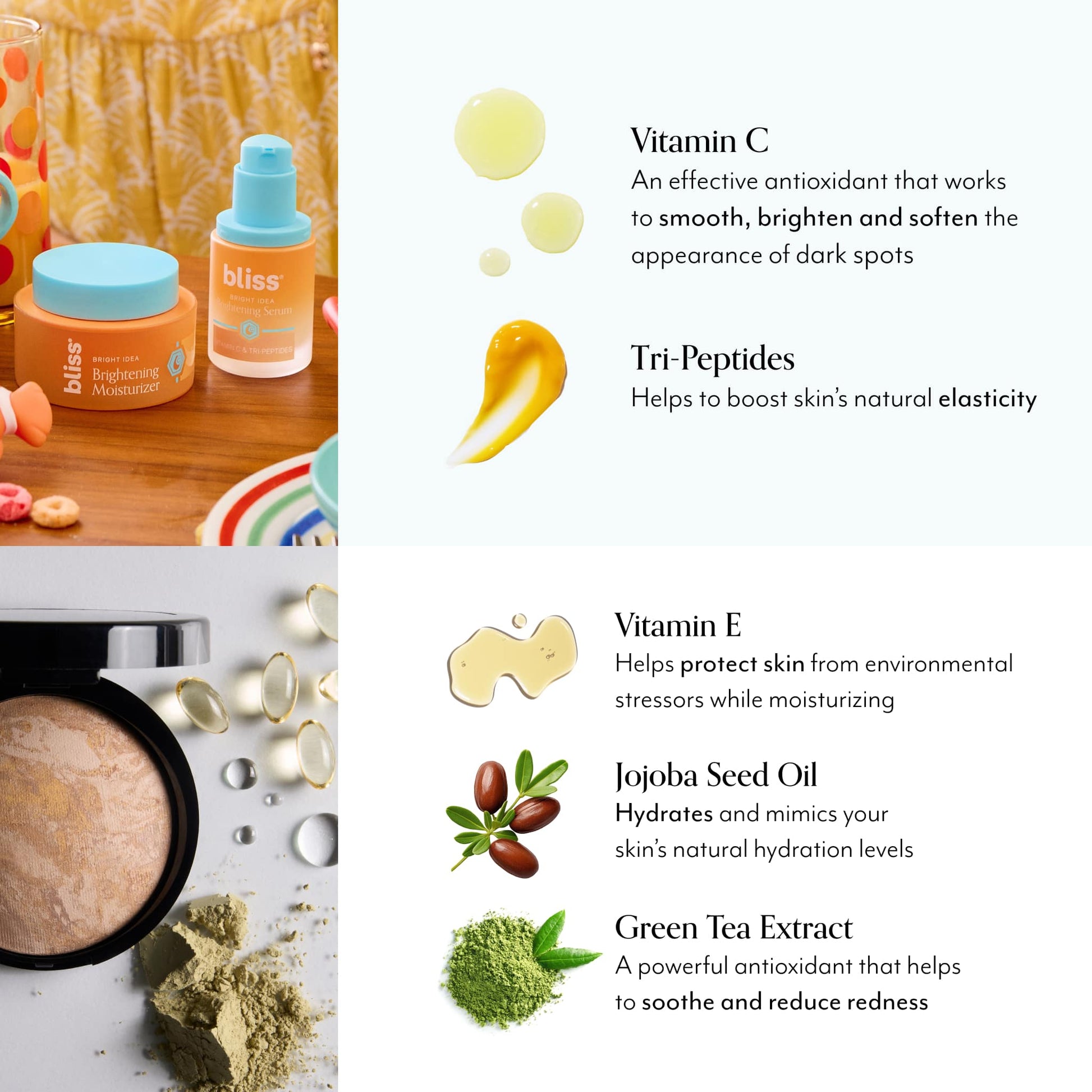 Add in the Bright Idea Brightening Moisturizer with Vitamin C for quenching hydration that works to really brighten.