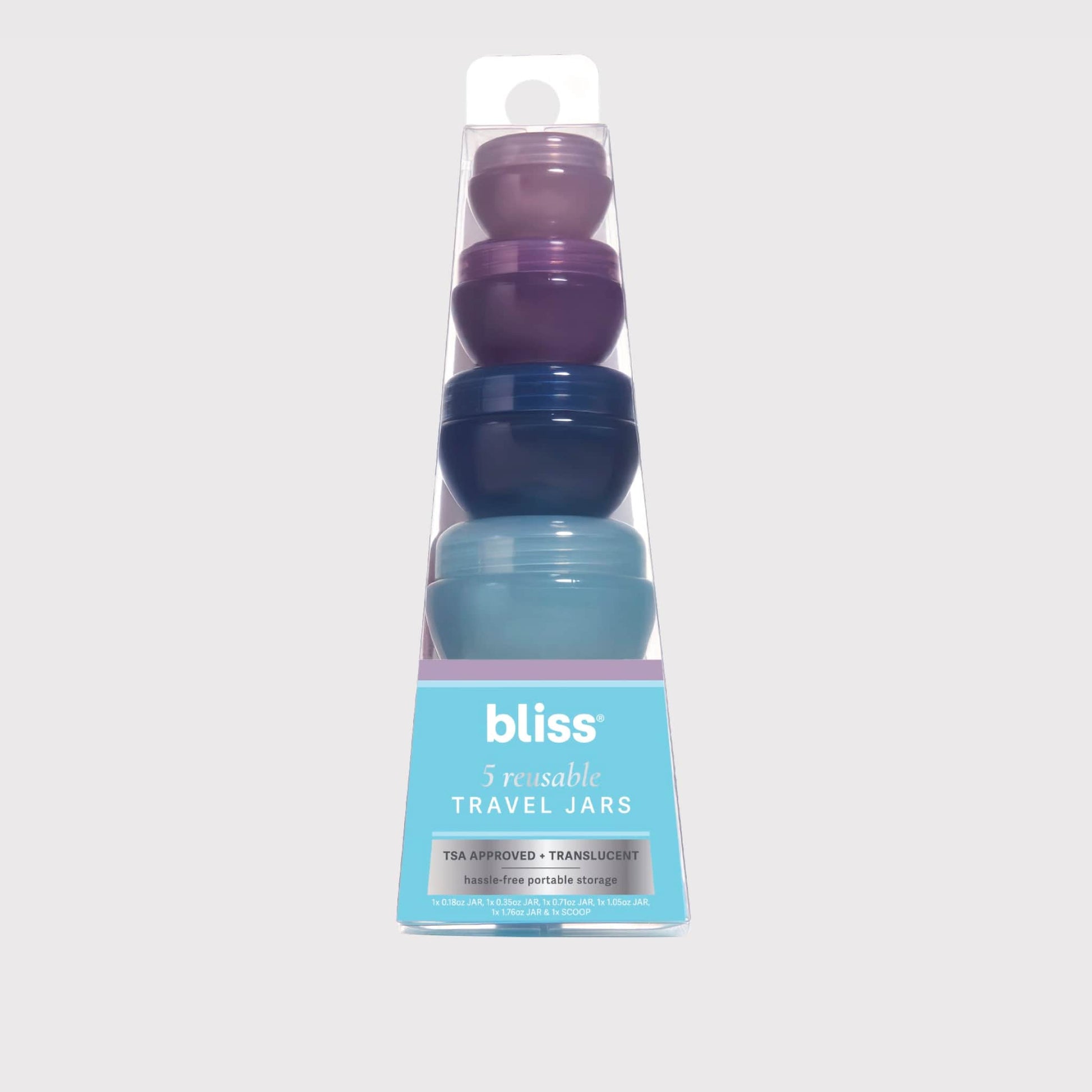Keep glowing, wherever you're going! These translucent TSA-approved travel jars securely store all of your beauty and small travel essentials to keep up your routine while you're traveling. Each jar has a leak-proof design to keep things mess-free in transit. Use the included spatula to scoop over your favorite Bliss serums, cleansers, or moisturizers to keep them close at hand.